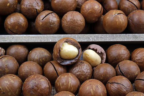 選樹上摘下的成熟的夏威夷果,果皮的含水量高達50%左右,果仁的含水量約24%。果實收獲后用手工攤開,防止果堆升溫,高溫會導致種仁變質。