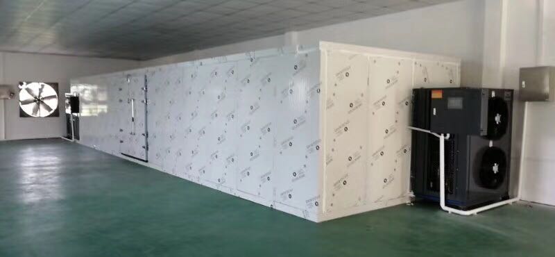 2、松茸烘干溫度的控制:烘干房溫度升到35度時,才可以將松茸推入烘干房,烘干時必須先用低溫烘烤,然后逐步升高溫度。通常1小時升溫1-3度,最高溫度應該控制在70度以下,一般要求35-40度之間烘烤6小時,在40-60度之間烘烤8-10小時,60-70度之間烘烤2小時,松茸含水份越高,需要在低溫條件下烘烤的時間就越長,如果烘烤剛開始,溫度就升的很高,會造成組織失水太快,松茸的菌蓋變形不圓整,菌褶倒疊,菌蓋出現裂紋,顏色變黑也破壞了酶的活性,使松茸失去原有的香味,松茸送入烘干房內需要連續烘干,直到干燥,加熱不可以中斷,溫度控制需要精準,不能起伏太大,不然影響烘干品質,這也是為什么熱泵烘干除濕一體設備比熱泵烘干分體設備在烘干品質上更有保證的原因。