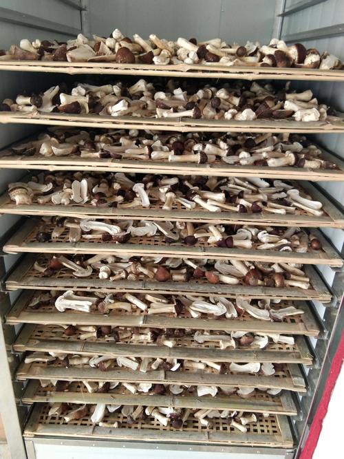 1、前期處理:先剝去菌子上的泥土和雜草,用陶瓷刀或者竹刀小心的削去根部的泥沙,盡量別用鋼刀,鋼刀會讓松茸沾上腥氣,最后用水刷去表面浮塵即可,動作要快,必須時用一把小軟刷,切記,不要用水浸泡松茸,因為松茸吸水后口感會大打折扣。裝盤時菌蓋朝上,菌柄朝下,擺放均勻,松茸采收后6小時以內必須烘,如果有冷藏條件,保存時間可以適當延長。