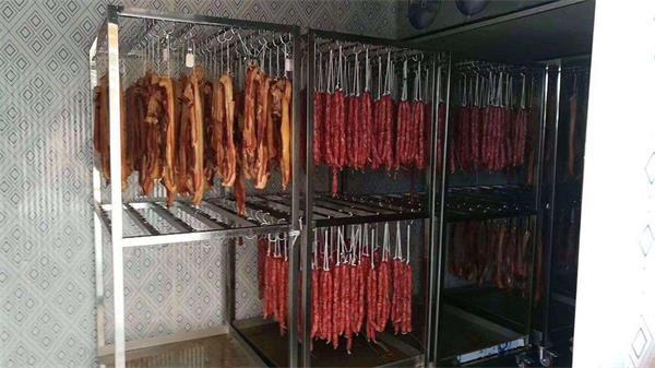 這一階段主要的制約因素是溫度〃為了強化干燥速度〃溫度要升高到60到62度,烘干時間控制在10到12個小時,相對濕度控制在38%左右。臘腸最終烘干濕度控制在17%一下。
