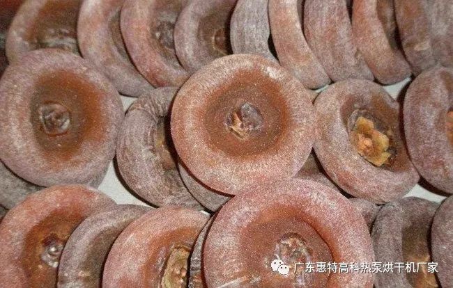 將捏過的柿果,再次送入烤房,升溫至45—50℃,持續(xù)15小時左右,使柿果再次快速脫水35%