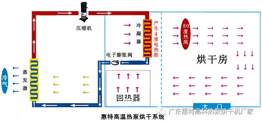 ①節能。只需消耗少量的電能,就可以在空氣中吸收大量的熱量,耗電量僅為電加熱的1/4;同燃煤、油、燃氣烘干機相比,可節省省60%左右的運行費用。1度電等于4度電。